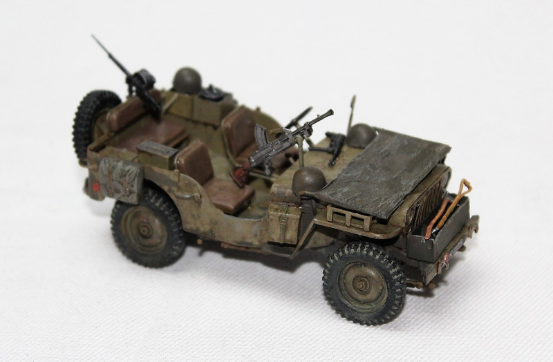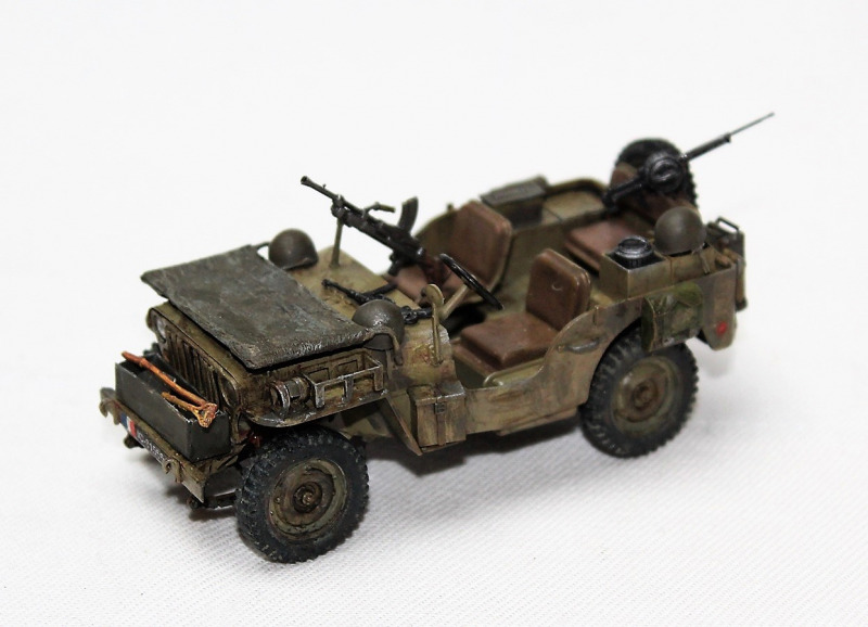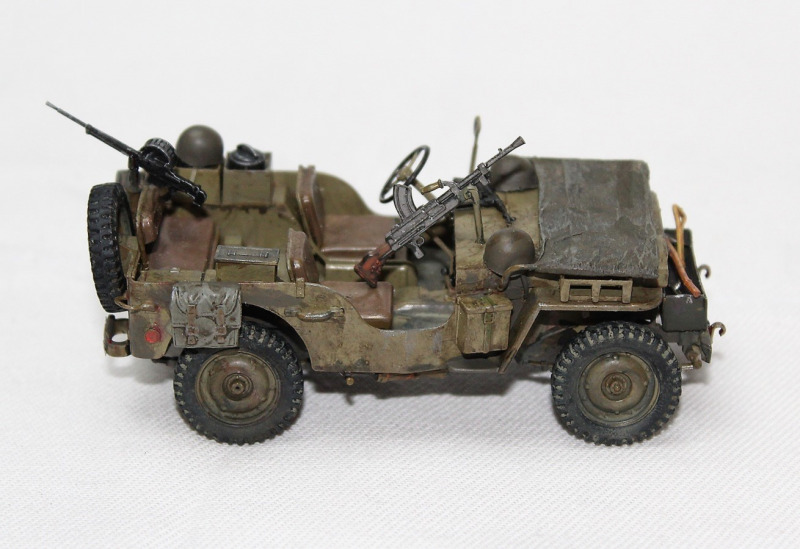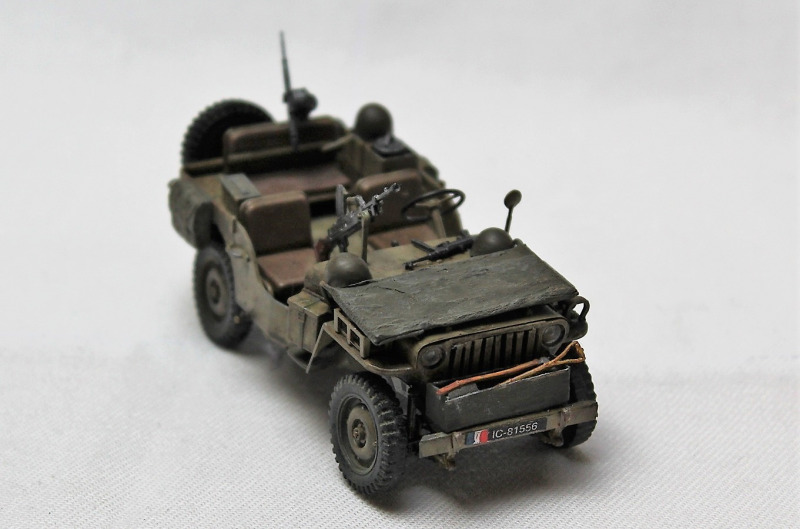 Aus dem Waffenfundus des Bausatzes wurde ein Bren-Maschinengewehr für den Beifahrer gewählt. Das am Heck angebrachte MAC 31 von Reibel mit dem auffälligen Rundmagazin („Camembert“) stammt aus der häuslichen Sammlung. Historisch relevant ist die deutsche MP 40 („Schmeisser“), die von französischen Truppen weiterverwendet wurde. Die Kennzeichen wurden am Computer angefertigt, ausgedruckt und angeklebt.