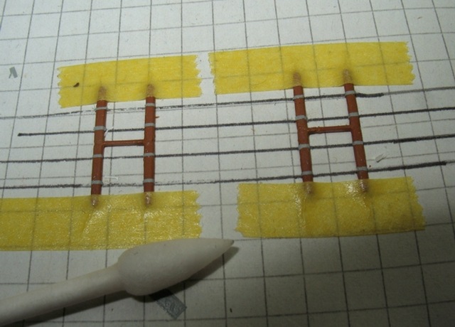 Auch die Steuerstangen hinter den äußeren Streben habe ich mit gezogenem Gießast gemacht, dafür vergaß ich die Leitung vom Oberflügeltank zum Rumpf...;-(