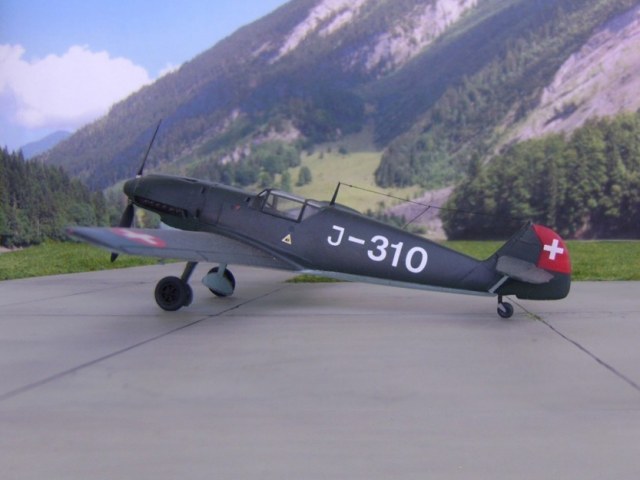 Ich habe aus diesem Bausatz die Me-109 D-1 der Schweizer Fliegertruppe aus dem Jahre 1939/40 gebaut. Das Modell zeigt die J-310 kurz nach der Ablieferung 1939 und noch ohne den später eingebauten Fl-Mg 29.