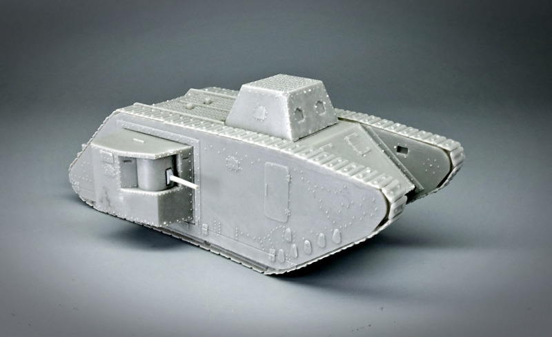 A7V-UVorführung und Erprobung des Prototyps in Berlin 1918von Stefan Szymanski (1:72 Modelltrans)Zur Geschichte:Während des Ersten Weltkriegs erblickte die Panzerwaffe das Licht der Welt. So waren es zu Anfang gerade die Briten, die die Vorzüge gepanzerter Panzerfahrzeuge auf Fahrketten erkannten, um die starren Befestigungen der Westfront aufzubrechen und etwaige Durchbrüche zu erzielen, die mit reinen Infanterie-Sturmangriffen einfach nicht möglich waren und regelmäßig im gegnerischen MG- und Artilleriefeuer mit großen Verlusten liegen blieben. Nach gewissen Anfangsproblemen, wobei viele Panzer des Typs Mk.I mit eher unausgereifter Technik oft liegen blieben, stellten sich die ersten Erfolge bei der Schlacht um Cambrai 1917 ein, bei den britische Panzer sogar die Hindenburglinie durchbrechen konnten. Doch konnte dieser Durchbruch von den Briten nicht genutzt werden, so dass eine nicht unerhebliche Anzahl an britischen Panzern den Deutschen in die Hände fiel. Die deutsche Heeresführung schenkte zu Anfang der neuen Panzerwaffe keine große Beachtung, stand der neuen Technik eher skeptisch gegenüber und glaubte hier nicht wirklich an ein erfolgreiches Konzept. Das änderte sich nach Cambrai maßgeblich, so dass man im Deutschen Reich selbst daran ging, einen eigenen Panzer zu entwickeln. Das Ergebnis war der A7V, von dem bis Kriegsende durch den Rohstoffmangel gerade mal 20 Stück gebaut werden sollten. Mit den Erfahrungen mit dem A7V und den bis zu 100 erbeuteten und erprobten britischen Mk.IV-Panzern befasste man sich mit Weiterentwicklungen. So wollte man die Vorteile beider Panzer in einem neuen Projekt verwirklichen. Das Ergebnis war der A7V-U. Der ab 1917 entwickelte Panzer lehnte sich gerade in der typischen Rhombusform mit den umlaufenden Ketten stark an den Mk.IV an. Auch fand man hier die typischen Seitenerker vor, die aber über leistungsstarke belgische 5,7cm-Kanonen und einen verbesserten Seitenschwenkbereich verfügten. Im Gegensatz zum A7V sollte der Turm den MG-Schützen dienen, während der Fahrer und Kommandant in der Wannenfront Platz finden sollten. Insgesamt war hier eine Besatzung von sieben Mann geplant. Zunächst sollten bis Februar 1919 etwa 60 Panzer diesen Typs geliefert werden, die dann bis Juni 1919 auf eine Stückzahl von 240 Fahrzeugen ausgebaut werden sollte. Aber nicht nur das Kriegsende machte hier einen Strich durch die Rechnung. So wurde der einzige Prototyp des A7V-U bei der Daimler-Motoren-Gesellschaft in Berlin gebaut. Der auf dem Fahrgestell Nr. 524 basierende Prototyp verfügte über ein stattliches Gewicht von fast 40 Tonnen (im Vergleich A7V 30t und Mk.IV 27-28t), was sich durch einen dazu schlecht ausbalancierten Schwerpunkt sehr negativ auf die Fahreigenschaften auswirkte. Auch verfügte die Besatzung trotz der Größe nur über sehr wenig Platz im Kampfraum. Die Kritikpunkte summierten sich immer weiter. So war das Projekt erheblicher Kritik wichtiger Entscheidungsträger ausgesetzt. Mitentwickler des A7Vs bemängelten die gegen Beschuss ungeschützten Laufketten, so dass man mit dieser Entwicklung den großen Schwachpunkt der britischen Panzer nun noch nachahmen würde. Des weiteren machte sich die Rohstoffknappheit immer weiter bemerkbar, Panzerstahl war quasi nicht verfügbar und es mussten Prioritäten gesetzt werden. So wurde das Projekt „A7V-U“ nach der Erprobung im Juni 1918 zuerst zu Gunsten einer Krupp-Protze zurück gestellt und im September des gleichen Jahres schlussendlich aufgegeben, wobei der einzig vorhandene Prototyp sein Schicksal in der Verschrottung fand. Der Modellbausatz:Bei dem A7V-U kann man von einem sehr unbekannten Panzertypen aus der Zeit des Ersten Weltkriegs sprechen, der wohl nur Experten bekannt sein dürfte. Des weiteren zeichnet sich dieser Panzer nicht gerade durch Eleganz und Stromlinienförmigkeit aus. Wären Panzer zeugungsfähig, könnte man den A7V-U auch als ein ungeliebtes Kind eines A7Vs und Mk. IV betrachten. Also alles andere als ein klassischer Hingucker und weit abseits des modellbauerischen Mainstream. So wird man hier auch nur bei Modelltrans, einen Kleinserienhersteller aus Essen fündig, der sich im kleinen Maßstab gerade auch auf solche Raritäten fokussiert hat. Es handelt sich hier um einen reinen Resinkit, der sich nur auf wenige Bauteile beschränkt und dementsprechend einen schnellen Zusammenbau garantiert. Alle Bauteile verfügen über den typischen Angussblock, der mit einer feinen Resinsäge entfernt werden sollte. Die Detaillierung kann man als absolut gelungen bezeichnen. Lediglich kleinere Lufteinschlüsse (typisch für Resinbauteile) und das damit verbundene Fehlen einiger Nieten der charakteristischen Nietenstruktur schmälern den Gesamteindruck ein wenig. Auch lassen sich die beiliegenden MGs für den Turm nicht wirklich verwenden. Das fällt aber kaum ins Gewicht, da der einzige Prototyp eben ohne diese Turmbewaffnung erprobt wurde. Zusammenfassend verspricht der Bausatz ein kurzes Bastelvergnügen, bei dem man sich anschließend mehr der Farbgebung und Alterung widmen kann. Also ein Kit ganz nach meinem Geschmack.