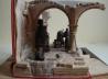 40mm Figuren sind normalerweise nicht mein Maßstab, aber an der Szene "Nachts im Skriptorium" von Scorpio Models konnte ich beim Herzog von Bayern 2016 nicht vorbeigehen. Offenbar eine Szene aus "im Namen der Rose" darstellend, wurde nach kleinen Veränderungen an den Figuren eine Studierstube im Kloster daraus, an der ich vier Monate gebaut habe. Die ganze Szene sollte aus alten Büchern heraus entstehen, passend zum Thema. Bis auf die Figuren und die Öllampe konnte ich von den schönen "Möbeln" aus den Figurensets leider nichts verwenden, aber auf deren Basis habe ich eine neue Einrichtung aus Karton gebastelt. Die Mauern und Säulen sind aus Styrodur, Fimo und Holz, darüber Gips. Der Baum ist aus Draht, Fimo und Feinspachtel.