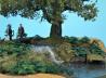 Um die Wasseroberfläche darzustellen, habe ich das Water Texture von Vallejo auf das ausgehärtete Harz aufgetragen. Die Gischt und den kleinen Wasserfall habe ich mit Watte und dem Water Texture realisiert und anschließend mit weißer Acrylfarbe trocken gebürstet. Zum Schluss habe ich dann den Baum und die Figuren in das Diorama eingefügt.
