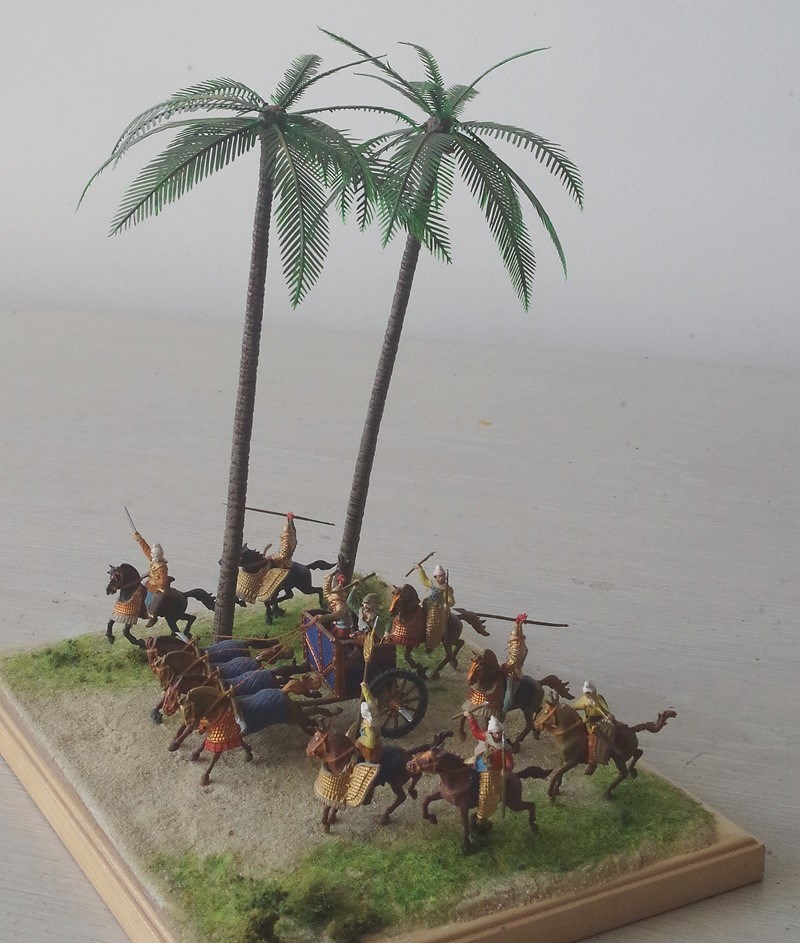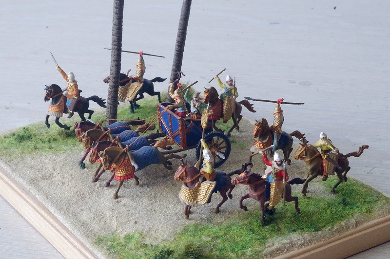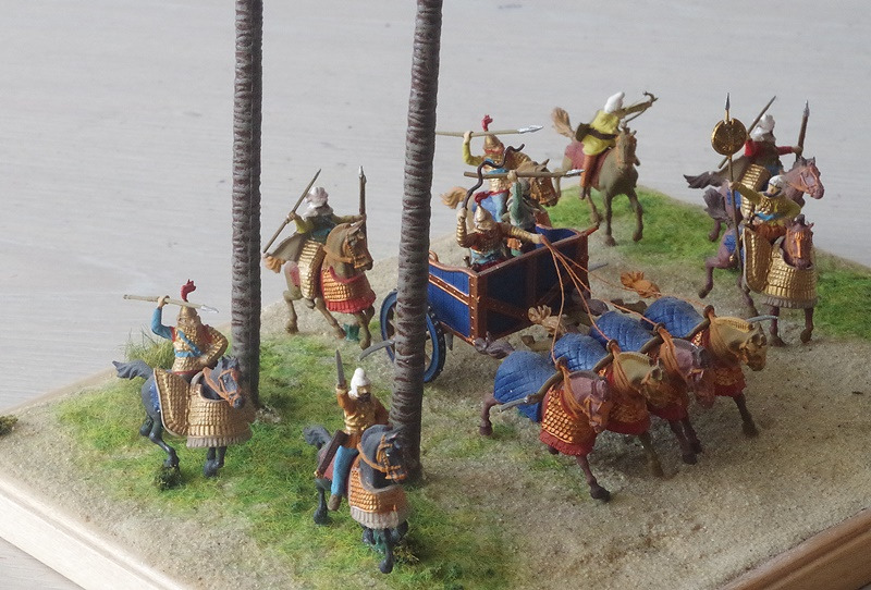 Hier sind einige Bilder aus der "Weichplastikzeit": Die kleinen Perser mit dem Streitwagen sind immer noch schöne Figuren und warten schon lange in ihrer Vitrinenecke auf die macedonischen Gegner von Alexander dem Großen, die noch im Kartonstapel schlafen.