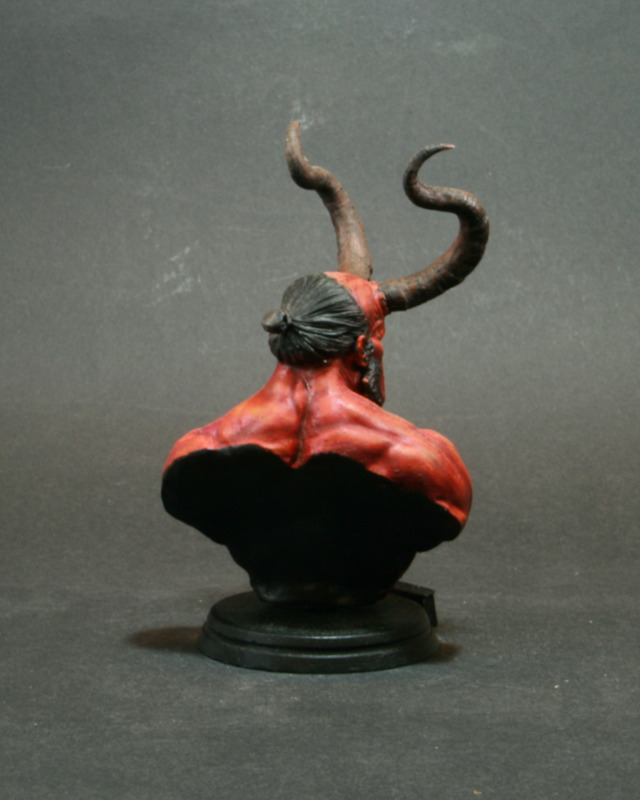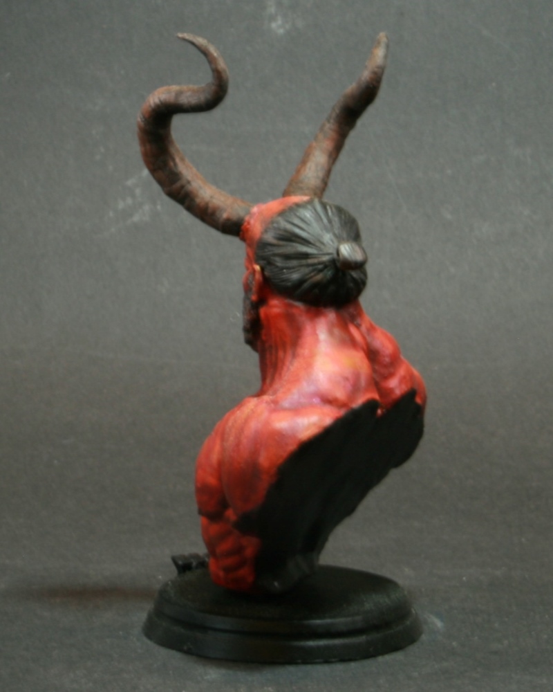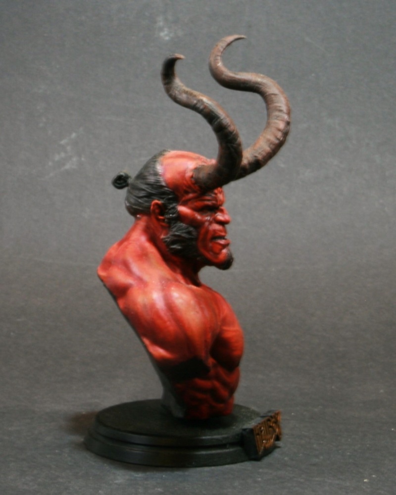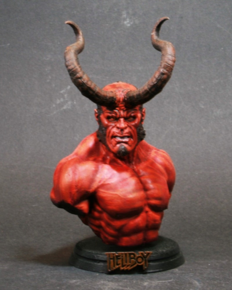 Hier haben wir eine relativ kleine Büste von dem Comiccharacter Hellboy. Dieses Comic aus dem Jahr 1993 wurde öfter verfilmt - unter anderem mit Ron Perlman, der vermutlich auch Vorbild für diese Büste war.