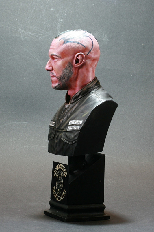 Im folgenden nun die vorerst letzte Büste der Reihe "Sons of Anarchy", obwohl ja noch welche fehlen, die aber noch nicht modelliert sind. Hohl gedruckt wie immer in Resin, bemalt mit Öl auf Acryl.