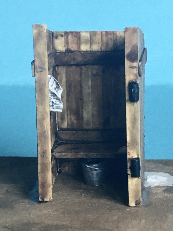 Und was hat das alles mit einem Eimer zu tun? Für ein anderes Projekt brauchte ich einen Eimer im Maßstab 1:72. Da ich ungern auf Accessoires vom „Aftermarket" zurückgreife, kam nur der Eigenbau in Frage. Gesagt-Getan! Beim Basteln kam mir meine Kindheit und Jugend in den Sinn, denn da gab es in manchem Dorf noch Plumps-Klo‘s... Bei manchen fielen die Exkremente nur in eine Grube unter dem Häuschen, bei anderen in einen Eimer unter dem „Thron". Mit Sand wurde dann Lage um Lage abgedeckt, bis der Eimer voll und zum Entleeren bereit war. Will heißen: Die Idee und Gestaltung zu diesem Diorama begann und kam mit dem Eimer! Joachim Forg Publiziert am 05. Dezember 2025 © 2001-2025 Modellversium Modellbau Magazin | Impressum | Links |