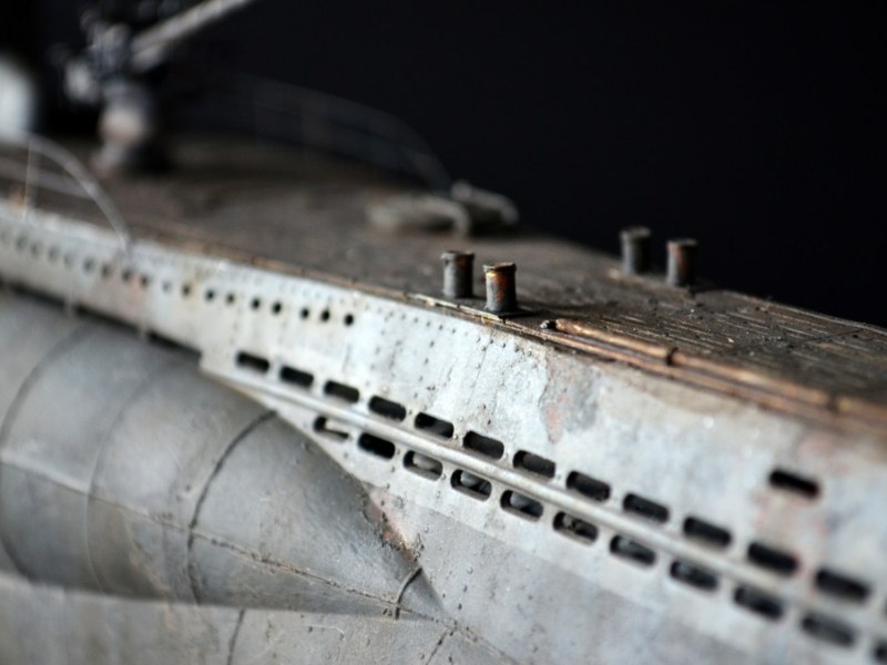 Verwendetes ZubehörPontos: Detail-Set von Pontos (Ätzteile, gedrehte Messingteile, Resinteile, Echtholzdeck) RC-Subs: Ätzteile WEM (White Ensing Models): Ätzteile Archer Fine Transfers: Nieten & Schweißnähte (Decals) Eduard: Deckgeschütz aus Resin Blue Ridge Models: Oberteil des Druckkörpers