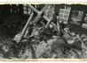 Bemalt wurden die Schuttberge mit matten Revellfarben und dem Pinsel. Die Häuserzeile wurde mit stark verdünnter schwarzer Revellfarbe einem Washing unterzogen. Einige Kanaldeckel aus dem Farbdrucker lassen das Diorama noch realistischer wirken. Die Propagandaplakate und die Flagge spendierte der Farbdrucker. Einige Teile aus der Restekiste (wie die Absperrgitter von Preiser oder die Sessel von Revell) lassen die Schuttberge um einiges realer wirken.