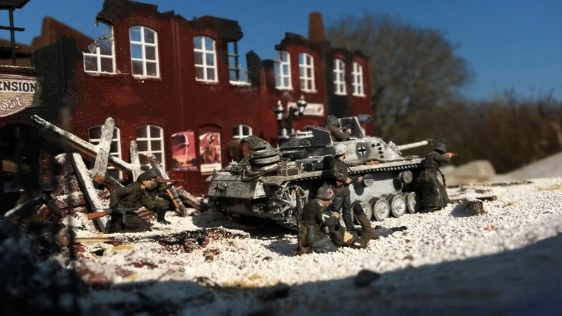 Die Soldaten stammen aus den Kits von Zvezda (1:72 German Elite Troops 1941-1943 und 1:72 German Reconnaissance Team), Revell (1:72 Deutsche Panzergrenadiere 1944 WWII) und Pegasus Hobbies (1:72 Germans in Berlin 1945).