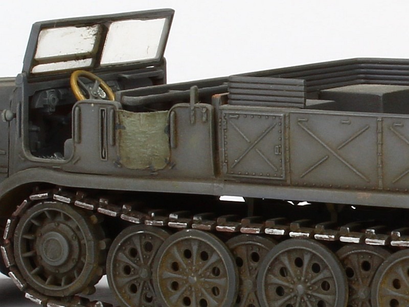 Die Militär-Bausätze von Revell in 1:72 sind für ihre Qualität bekannt, dieser ist keine Ausnahme. Er ist wirklich hervorragend detailliert für diesen Maßstab, der Bau war die reinste Entspannung. Gebaut wurde OOB, lediglich eine "Türplane" links und rechts an der hinteren Sitzreihe habe ich hinzugefügt. Lackiert wurde mit Gunze Acrylfarben, die Alterung erfolgte mit bekannten Mitteln, wie Washing, Pigmenten, Drybrushing und Co.