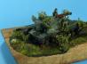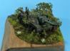 Die hier gezeigte Szene soll einen SU-152 zeigen, der gerade die Stellung wechselt und dabei eine Waldlichtung passiert. Auf dem Weg zum Zielort schaut einer der Soldaten nach hinten und stellt sich die Frage, wann sie denn wohl den großen Holzbalken gegen das Festfahren einsetzen werden, da der vom Regen aufgeweichte Boden nichts Gutes verheißt und ein schnelles Vorankommen erschwert.