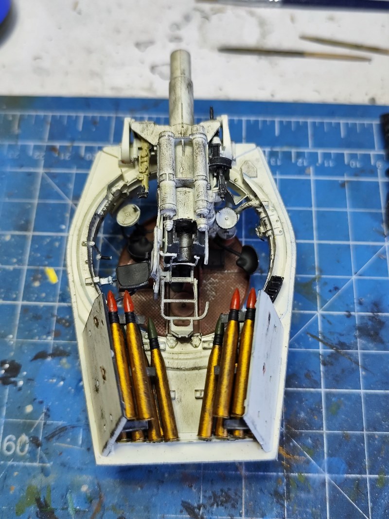 Fangen wir mit dem Turm an: hier sind sowohl die durch die offenen Luken erkennbaren Teile gut detailliert, wie auch die Innenseite der Turmteile. Und natürlich die Kanone: