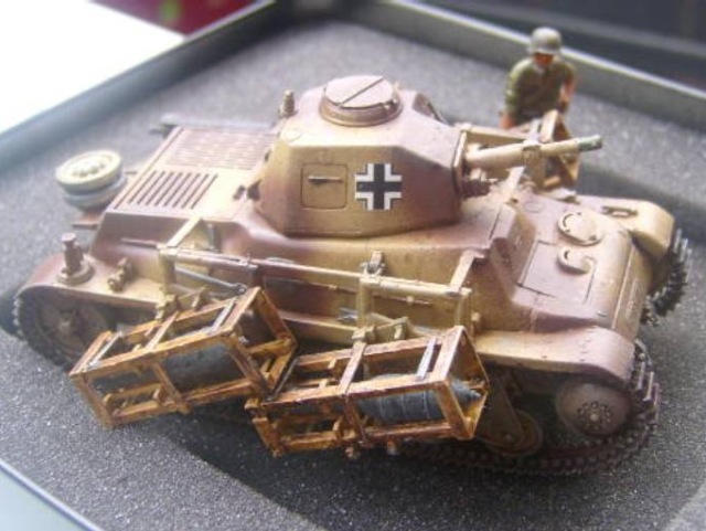 Hier mal ein "Zwischendurch-Projekt". Dieser Beutepanzer stand schon länger gebaut bei mir im Schrank. Es ist ein Trumpeter-Modell der früheren Phase, soll heißen, die Detaillierung ist nicht sooo üppig und das mittlerweile auf dem Markt befindliche Pendant (von Bronco, glaube ich) soll wesentlich besser sein. Nun ja, es war vorhanden und wollte endlich lackiert werden. Ich habe mich dabei an die Bauanleitung gehalten, da mir Dunkelbraun auf Dunkelgelb, zumindest in diesem Fall, ganz gut gefiel.