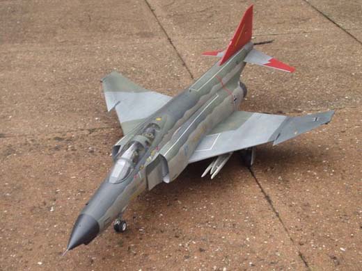 Nun möchte ich euch mein neustes Roll Out präsentieren. Es ist eine MDD F-4F Phantom der Luftwaffe vom JaBoG 35 in Pferdsfeld. Einsatzort und -zeit dieser Maschine hier war Decimomannu, Sardinien 1987, deswegen auch der für manche ungewöhnlich anmutende Anstrich, sollte glaub ich der Norm 81 Anstrich in einer seiner mehreren Varianten sein.