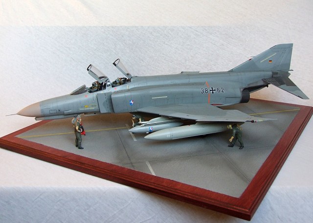 Da ich ja hier im MV bereits meine F-4F in Norm 90J eingestellt habe, zeige ich hier nur ein paar Bilder neueren Datums, welche die 38+62 auf einem kleinen Dio/Tabletop beim LCC zeigt. Die Figuren sind ebenfalls Marke Eigenbau.