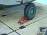 Die Diorama-Basis......besteht aus einer Styrodurplatte, die mit schwarzer Acrylfarbe, vermischt mit Holzspachtelmasse und einem Schuss Weißleim, überzogen wurde. In diese noch feuchte Masse drückte ich die genoppte Unterseite einer Schneide-Unterlage aus Plastik, so dass es zu einem unregemäßigen Rautenmuster kam. Damit wollte ich die typische Oberfläche der russischen, länglichen PAG-Betonsegmente andeuten. Darin schnitt ich die Trennfugen mit einem Messer ein. Die rechteckigen Lücken arbeitete ich mit einem kleinen Beitel heraus. Im Anschluss wurde das Ganze mit Betonfarbe von Faller gerollt und die Fugen wurden mit einer Mischung aus Weißleim und Acrylfarbe mit Spritze und Kanüle in Schwarz "gegossen". Dann gab es ein Washing und "Treibstoff-/Ölspritzer" mit verschiedenen braunen Ölfarben, die wunderbar mit dem Acrylfarbauftrag und der festen, zähen Oberfläche des Dioramas harmonieren. Zum Abschluss kam ein hellgrauer Pastellkreidestift zum Einsatz, um noch ein paar helle Kontraste zu setzen. Die zwei Radkeile sind Ätzteile von PART (chocks part B, PART Nr. S48-036). Dio-Oberfläche und Radkeile