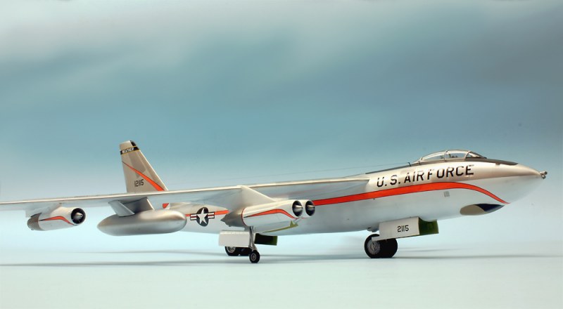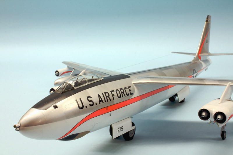 Auch heute noch darf die B-47 als wirklich formschöner und hocheleganter Entwurf gelten, was umso erstaunlicher erscheint, wenn man bedenkt, dass das revolutionäre Layout schon Mitte der 40er Jahre festgelegt wurde. Die langen Tragflächen sind mit 35 Grad stark gepfeilt - übrigens um einiges extremer als bei den deutschen Entwicklungen dieser Zeit - und sie tragen abgestrakte Triebwerksgondeln. Dies alles bedeutet eine große technische Herausforderung, die auch die Verlegung des Hauptfahrwerks in Tandem-Anordnung im Rumpf notwendig machte.