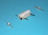 Es liegt eine Schnittzeichnung bei, die beim Eigenbau der Motoraufhängung hilft. Ich nutzte dafür CFK-Rundstäbchen mit 1 mm Durchmesser. Die Motorgondel versah ich noch mit Auspuffrohren aus der Restekiste. Die beiliegenden Props erwiesen sich als sehr empfindlich, sodaß ich auf übrige 3-Blatt-Propeller zurückgriff, die ich samt Spinner auf 2-Blatt umbaute.