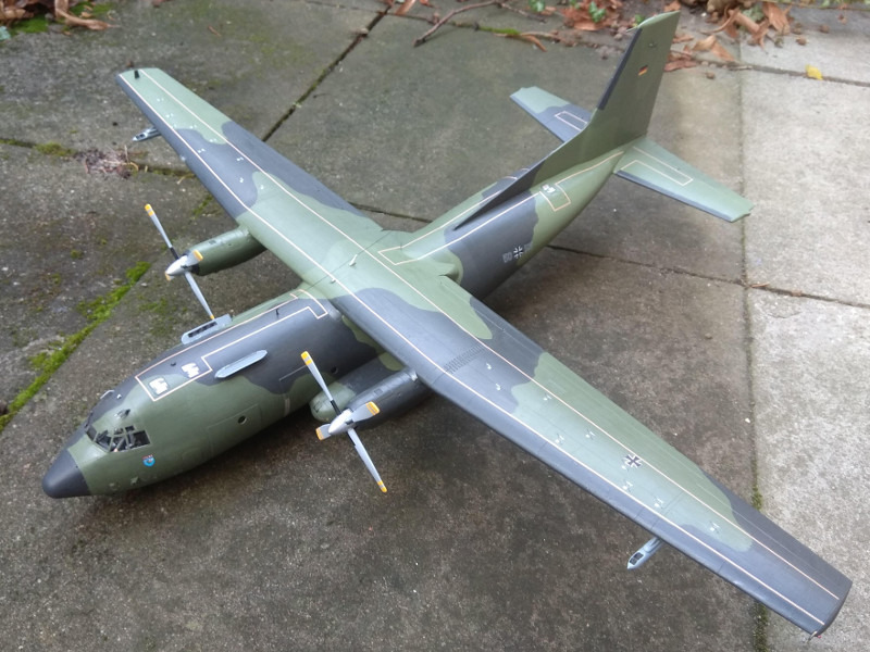 Neben der Form macht für mich die Tarnlackierung auch einen besonderen Reiz der Transall aus. Entsprechend war ich glücklich, dass mir diese ganz ordentlich gelungen ist. Die verschiedenen Töne stammen alle aus meinem „Misch-Fundus“ und sind kaum noch zu der ursprünglich verwendeten Originalfarbe zuortbar.