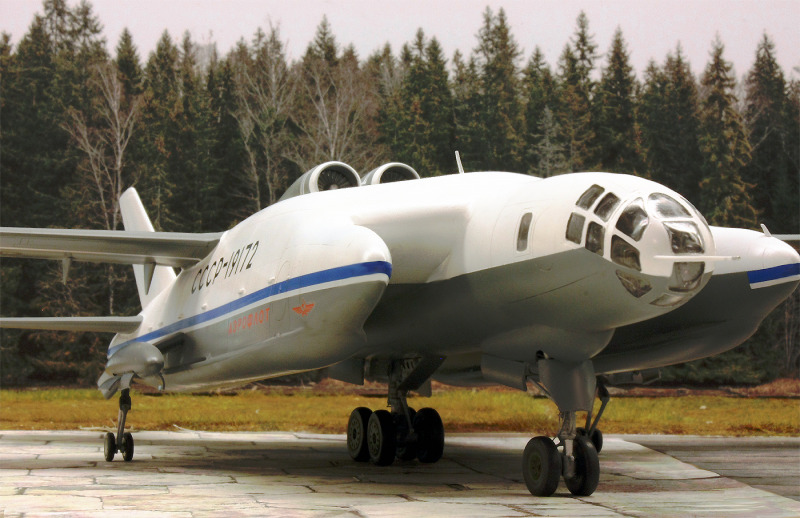 Mit diesen Informationen versteht man den ungewöhnlichen Anblick der WWA-14 schon etwas besser: die Unterseiten der beiden langgezogenen seitlichen Rümpfe dienen als Schwimmer; beim ersten Prototypen M1, hier gezeigt, erprobte man übrigens noch eine Konfiguration mit aufblasbaren Schwimmkörpern: im Flug sollten die leeren Schwimmer aerodynamisch günstig an die Rümpfe eingezogen werden können. Bei der zweiten gebauten WWA-14M2 war man von dieser Idee schon abgekommen, da sich die notwendige Mechanik bei höheren Geschwindigkeiten als zu problematisch erwiesen hatte. Der geplante Einbau von weiteren zwölf Hubtriebwerken für den senkrechten Flug wurde nicht mehr durchgeführt. Ein kurzer Blick auf die Abmessungen und Leistungsdaten der WWA-14 verdeutlicht, dass man es hier mit einem wahren Leviathan zu tun hat. Eine Länge von knapp 26 Metern und eine Spannweite von 28,50 m stehen zu einer beeindruckenden Höhe von 6,80 Metern. Unbeladen wog die WWA-14 schon 35.400 kg, mit Treibstoffen und 2.000 kg Abwurfwaffen brachte sie es auf 52.000 kg. Die am Rumpfrücken montierten beiden Solowjew D-30M Strahltriebwerke brachten die VVA-14 auf 760 km/h Höchstgeschwindigkeit. Die Dienstgipfelhöhe lag bei 10.000 Metern. Die für einen global präsenten U-Bootjäger angemessene Reichweite wird mit 2.450 Kilometer angegeben.