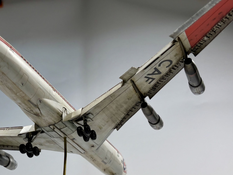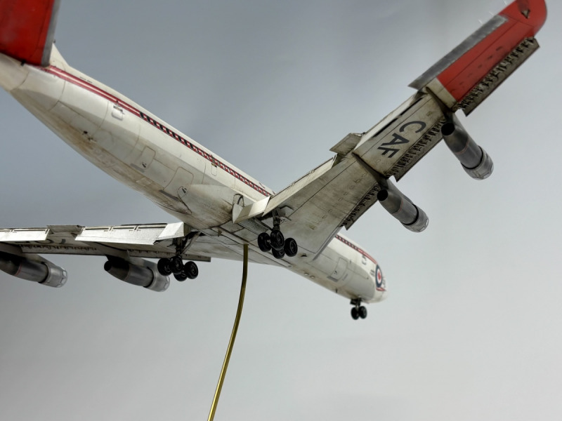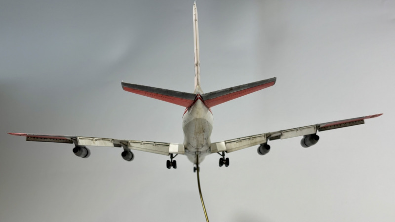 Mit dem Endergebnis bin ich mehr als zufrieden – das Modell ist zu meinem absoluten Liebling in der Vitrine geworden. Das liegt nicht zuletzt daran, dass die Boeing 707 ohnehin mein absolutes Lieblingsflugzeug ist: elegant, kraftvoll und mit einem ganz eigenen Charme, der mich schon immer fasziniert hat. Obwohl der Bau mittlerweile schon drei Jahre zurückliegt und ich seither noch einige weitere Flugzeuge fertiggestellt habe, bleibt dieser Flieger in puncto Ausstrahlung und Wirkung für mich unerreicht.