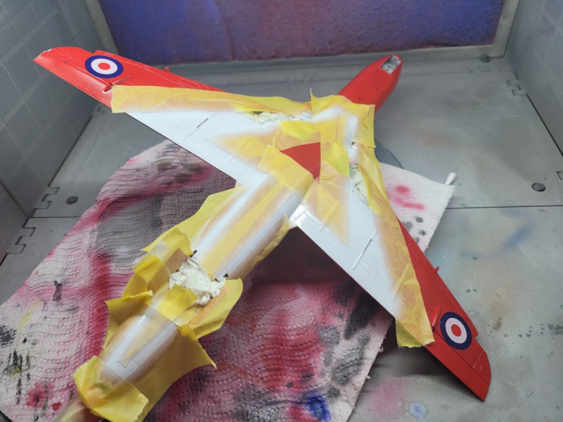 Die Decals waren hingegen mehr schlecht als recht. Sehr schlecht gedruckt, das Weiß war überhaupt nicht deckend und hatte eher etwas von einen Stück Emmentaler als von einer dichten, deckenden Fläche. Also wurden alle Streifen (und die Roundels teilweise) nachlackiert. Am Fahrwerk habe ich dann noch ein paar Leitungen ergänzt.