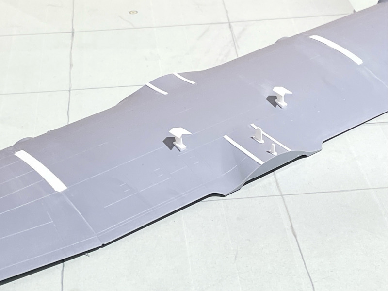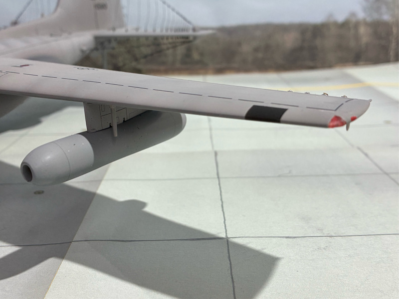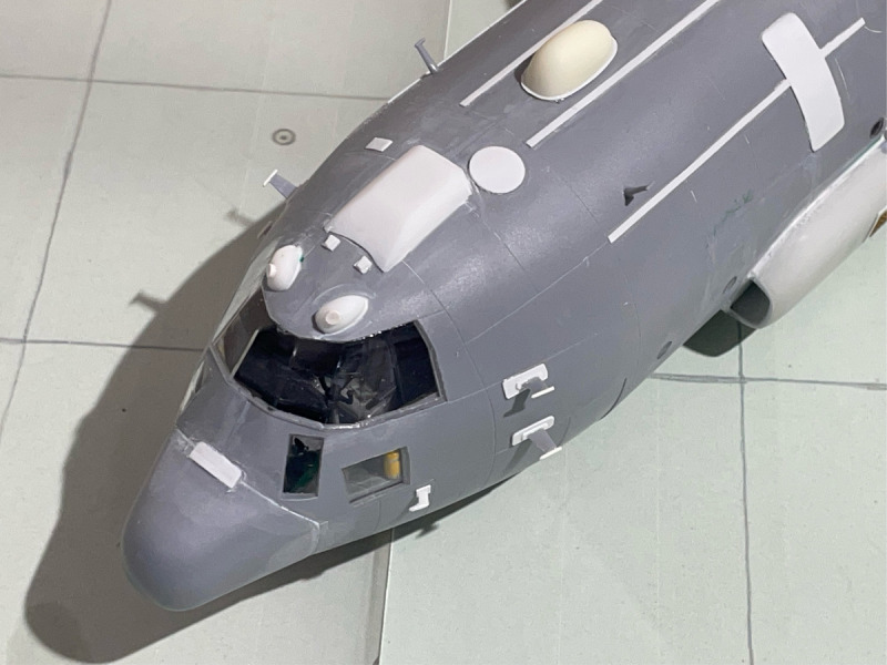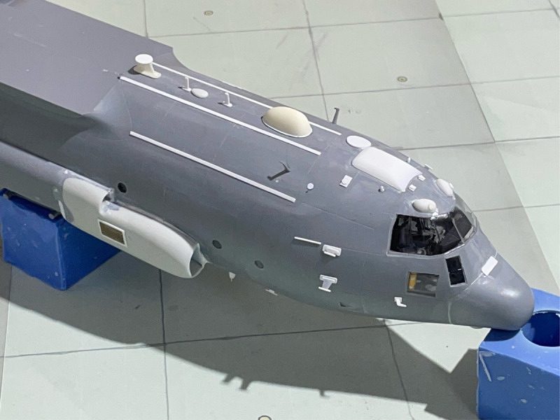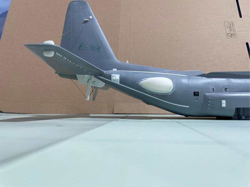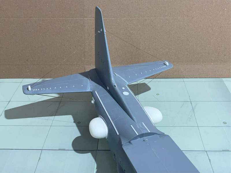 ...musste umfangreich mit vielen Verstärkungen, Domes, neuen Kühllufteinläufen und Antennen ausgerüstet werden. Da es keine Umbausätze gibt, musste eben wieder alles von Hand aufgebaut werden. Dazu kam - wie immer - meine klassische Bauweise mit Resin und Plastik-Sheets. Besonders herausfordernd war die Installation der Drahtantennen am Leitwerk, die aber erst nach der Lackierung des Rumpfes angebracht wurden. Ich lasse mal die Bilder sprechen.