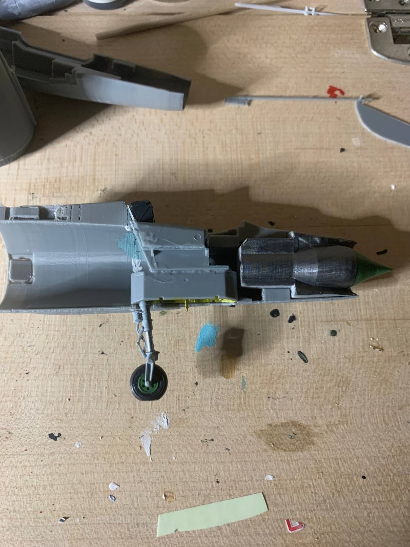 Während der Modellierung der Frontsektion musste ich an einigen Stellen improvisieren, da leider nicht genügend Zeichnungen und Referenzaufnahmen verfügbar waren. Daher orientieren sich die Kegelnase und Teile der inneren Struktur teilweise an der MiG-21MF. Leider war das Notebook, auf dem ich die J-8I konstruiert habe, nicht besonders leistungsstark. Aus diesem Grund musste ich mich bei der Detaillierung auf die wesentlichen Elemente beschränken. Nach mehreren Stunden exportierte ich schließlich das 3D-Modell, um es zu skalieren und für den 3D-Druck vorzubereiten. Bevor das endgültige Modell gedruckt wurde, fertigte ich einige Probedrucke an, um mögliche Fehler beim Modellieren zu erkennen und gegebenenfalls Anpassungen vorzunehmen. Besonders der Übergang zum vorhandenen J-8F-Rumpf sowie die Passgenauigkeit mit Cockpit und Fahrwerksschacht erforderten dabei kleinere Korrekturen. Der UmbauNachdem diese Bereiche überarbeitet worden waren, begann ich damit, die neuen Einzelteile endgültig auszudrucken und zusammenzusetzen. Die Komponenten ließen sich insgesamt gut montieren, und sowohl das Cockpit als auch der Fahrwerksschacht passten problemlos in die neue Rumpfsektion. Einige Stellen – etwa die Nahtbereiche – mussten jedoch gespachtelt und nachbearbeitet werden.