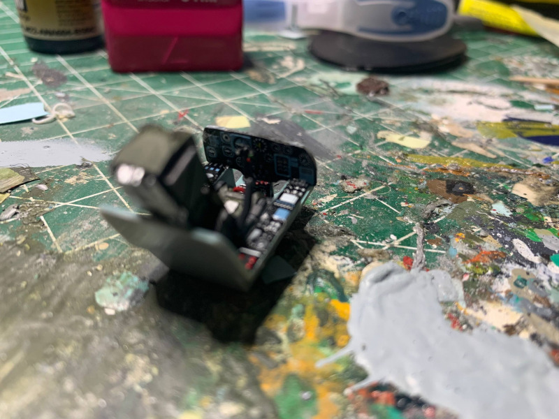 Anschließend stellte ich das Cockpit fertig, das ähnlich wie bei der MiG-21F-13 oder der MiG21PF über ein zusätzliches großes Visier verfügt. Dieses druckte ich ebenfalls aus; für das „Glas“ verwendete ich dünnen Kunststoff aus einer Erdbeerschale. Nachdem das Cockpitinterieur fertiggestellt war, setzte ich die Cockpithaube aus dem Eduard-MiG-21PF-Bausatz ein. Auch hier waren kleinere Anpassungen erforderlich. Mit der fertigen Frontsektion kam schließlich der Moment der Verbindung mit den vorhandenen J-8F-Bauteilen. Auch dieser Schritt verlief weitgehend problemlos, sodass nur wenige Nacharbeiten notwendig waren. Damit war der Umbau abgeschlossen.