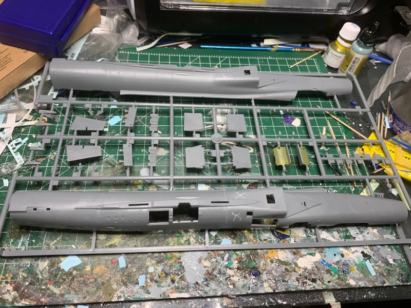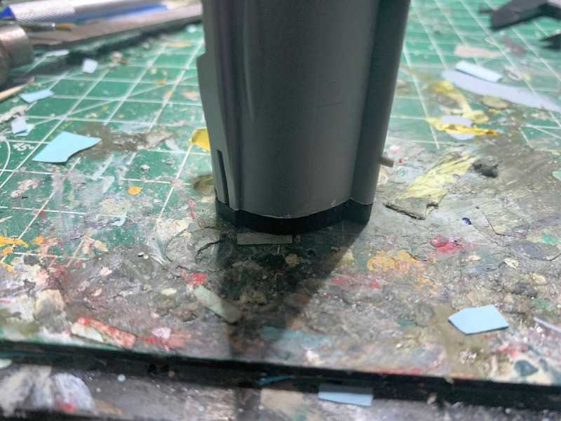 Nachdem die Zeichnungen vorbereitet waren, suchte ich zusätzlich nach Detailaufnahmen, was wiederum einige Zeit in Anspruch nahm. Letztendlich fand ich eine Art Reisebericht eines russischen Touristen, der mehrere Detailfotos der im Museum der chinesischen Luftstreitkräfte in Peking ausgestellten Maschine gemacht hatte. Nach stundenlanger Recherche begann schließlich der eigentliche Umbau. Zunächst suchte ich eine geeignete Stelle, an der ich den Rumpf des J-8F-Bausatzes von Trumpeter teilen konnte, um einen Querschnitt zu erhalten, auf dessen Basis der vordere Rumpf neu gestaltet werden sollte. Nachdem ich eine passende Position gefunden hatte, trennte ich die Rumpfteile und klebte die verbliebenen hinteren Rumpfsegmente mit Klebestreifen zusammen, um den Querschnitt abzuzeichnen. Diesen scannte ich anschließend ein und fügte ihn in die Konstruktionszeichnung ein.