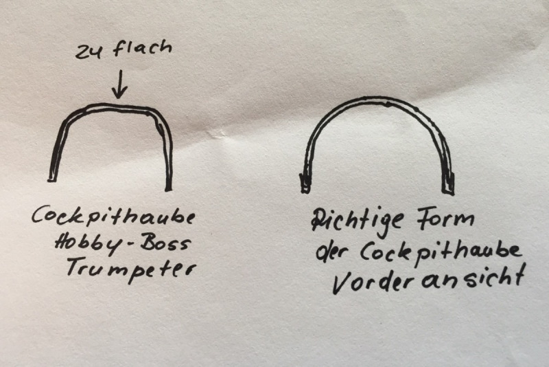 Das hier vorgestellte Modell besteht aus einem Grundbausatz von Hobby-Boss, aufgewertet mit einem Cockpitsatz aus Resin- und Fotoätzteilen von Aires. Des Weiteren habe ich neue tiefgezogene Transparentteile, welche ich selbst herstelle, verbaut. Dafür musste ein Ziehstempel hergestellt werden. Dies hielt ich für notwendig, da die beigefügten Transparentteile aus dem Hobby-Boss Bausatz nicht die richtige Form haben. Die Haube sowie die Frontverglasung sind oben zu flach, also zu eckig. Im Original ist die Haube in der Vorderansicht halbkreisförmig. Dies trifft auch auf den zu flachen Lufteinlauf zu. Dieser ist ebenfalls im Original fast halbkreisförmig. Da musste ebenfalls nachgearbeitet werden.
