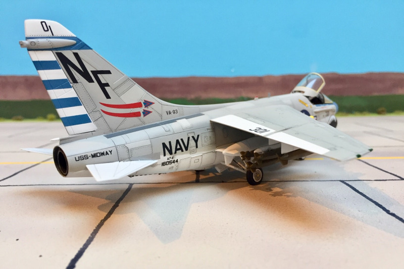 Die A-7 Corsair ist eine Weiterentwicklung der Vought F-8 Crusader. Die US Navy benötigte einen Nachfolger für die A-1 Skyraider als Angriffsflugzeug. Auch sollte sie die A-4 Skyhawk teilweise ersetzen. Die Corsair ist kürzer als die Crusader, hat einen größeren Rumpfquerschnitt und einen größeren Flügel. Der Erstflug der YA-7A erfolgte 1965 und die Indienststellung der ersten A-7A im September 1967. Die spätere A-7E wurde angetrieben von einem Allison TF-41 Triebwerk, welches ein Lizenzbau des Rolls Royce Spey 201 Aggregats war. Die Corsair konnte keine Überschallgeschwindigkeit erreichen. Von der A-7E wurden insgesamt 529 Maschinen bei der US Navy eingesetzt. Außer den Vereinigten Staaten setzten in Europa noch Griechenland und Portugal die Corsair ein. Insgesamt wurden etwa 1570 Maschinen aller Varianten gebaut.