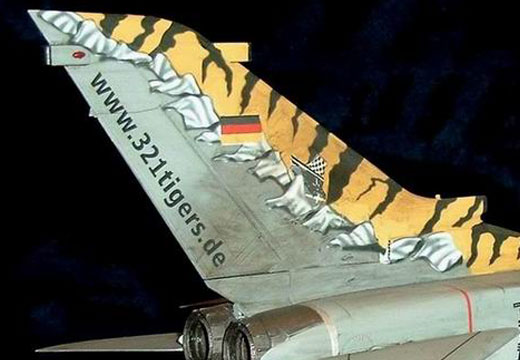 Nach den Decals erfolgte eine Versiegelung mittels Erdal Glänzer und ein Washing mit schwarzer Ölfarbe sowie dem Einsatz von Pastell-Kreide, um gewisse „Gebrauchsspuren“ zu erzeugen. Gerade im Heckbereich sind Tornados auf Grund ihrer Schubumkehr sehr schnell mit Abgasspuren versehen, was natürlich auch vor unserer Tigermaschine nicht halt macht. Thomas Neuss Publiziert am 08. August 2003 © 2001-2025 Modellversium Modellbau Magazin | Impressum | Links |