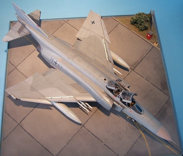 Hier möchte ich nun meine F-4F Phantom zeigen, welche ich schon vor einem guten Jahr fertig gestellt habe. Die Maschine stellt die 38+62 vom JG72 „Westfalen" dar, wie ich sie 2001 am Platz in Hopsten gesehen habe.