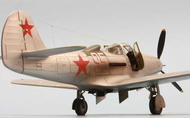 Meine Version zeigt eine solche frühe P-39/ P-400. Belegt ist das Aussehen dieser Maschine durch Fotomaterial, allerdings lässt die Qualität der Aufnahmen einigen Interpretationsspielraum zu. Sicher lassen sich jedoch der silberne, glänzende Anstrich sowie die ungewöhnlich aufgetragene Kennung dieser Maschine angeben. Auf einer der Aufnahmen steht sie mit einer ganzen Reihe ähnlich lackierter Airacobras in einer Schneelandschaft... Diese Maschinen wurden 1941/42 von Basen um Murmansk zum Schutz eintreffender Konvois eingesetzt - ein in jeder Weise unerbittlicher Kriegsschauplatz.