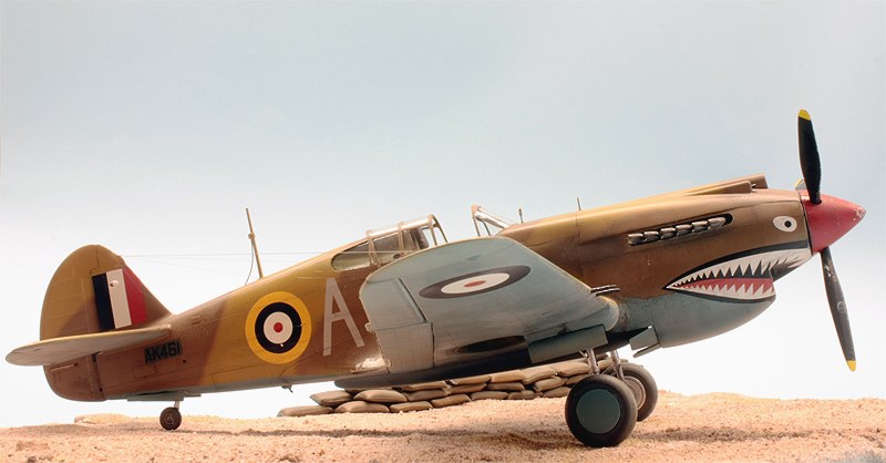 Eine jener eingangs erwähnten Legenden bezieht sich auf das an dem Modell sichtbare „Haifischmaul“. Noch hält sich ja die Erzählung, dass Chenaults „Flying Tigers“ diese markante Markierung erfunden hätten. Das Vorbild des abgebildeten Modells tritt aber den Gegenbeweis an: Es war Personal der 112 Squadron der RAF, welche im Herbst 1941 die gestalterische Vorlage der großen Kühleröffnung zum ersten Mal in ein stimmiges Raubtiermaul umgesetzt hatten. Ein Vorbild, das Schule machen sollte: bald darauf bei den „Flying Tigers“ und auch anderswo, auf allen möglichen Flugzeugnasen…und das bis heute.