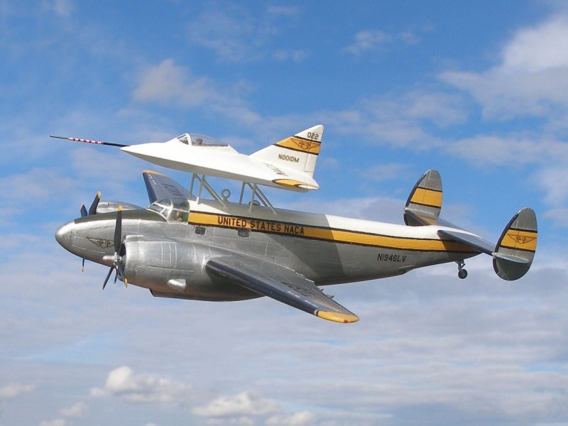 Zunächst hatte ich vor, die DM-1 so darzustellen, wie sie mit den letzten Modifikationen im Windkanal erprobt wurde: Unlackiert und ohne bewegliche Steuerflächen. Ich fragte beim National Air and Space Museum nach, ob es Farbfotos gab. Man hatte sich freundlicherweise bemüht, leider konnte man nichts auftreiben. So entschloss ich mich ein fiktives Testflugzeug zu bauen, das auf einem zweimotorigen Flugzeug im Huckepack in die Luft befördert wird. Von der Größe schien mir die Lockheed Ventura passend, die ich sowieso noch nicht in meiner Sammlung hatte. Somit war mein Modellbauprojekt festgelegt.