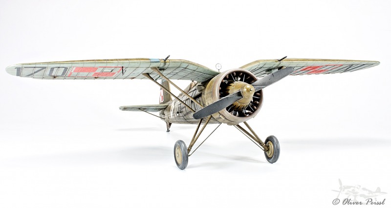 Alle Teile passen hervorragend zusammen, so dass auf Spachtelarbeiten weitgehend verzichtet werden kann. Bevor die Kleinteile ihren Platz finden, werden die Decals angebracht. Bedenken, dass die fein geriffelte Oberfläche beim Anbringen der Decals ein Problem werden könnte, sind unnötig. Diese legen sich, mit nur geringem Einsatz von Weichmacher, nahezu perfekt in die Strukturen der PZL. Eine Schutzlackierung versiegelt die Schiebebilder und nach angemessenem Trocknen wird das Modell inklusive der Anbauteile mit Ölbrühe und Pastellkreide gealtert. Im Anschluss werden Fahrwerk und Kleiteile angeklebt und nach dem Durchtrocknen beendet eine Lage Mattklarlack den Bau der PZL.