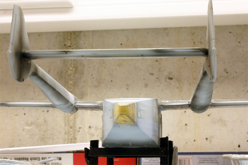 Das Cockpit musste ein wenig vorbildnäher umgebaut werden; so ist etwa der Copilotensitz zwar mit einem eigenen Satz Ruderpedale ausgestattet, hat aber an Stelle eines voll ausgebildeten Steuerhorns nur eine Art „Teleskop-Notknüppel“. Verschiedene Details im Cockpit wurden etwa mit Kupferdraht sowie Ätzteilen aus der Restekiste gestaltet. Übrigens muss man bei der Arbeit am Klarsichtteil darauf achten, die untere Reihe an Cockpitfenstern nicht zu verglasen. Italeri sieht das zwar vor, in der Realität waren hier allerdings keine Fenster zu finden.