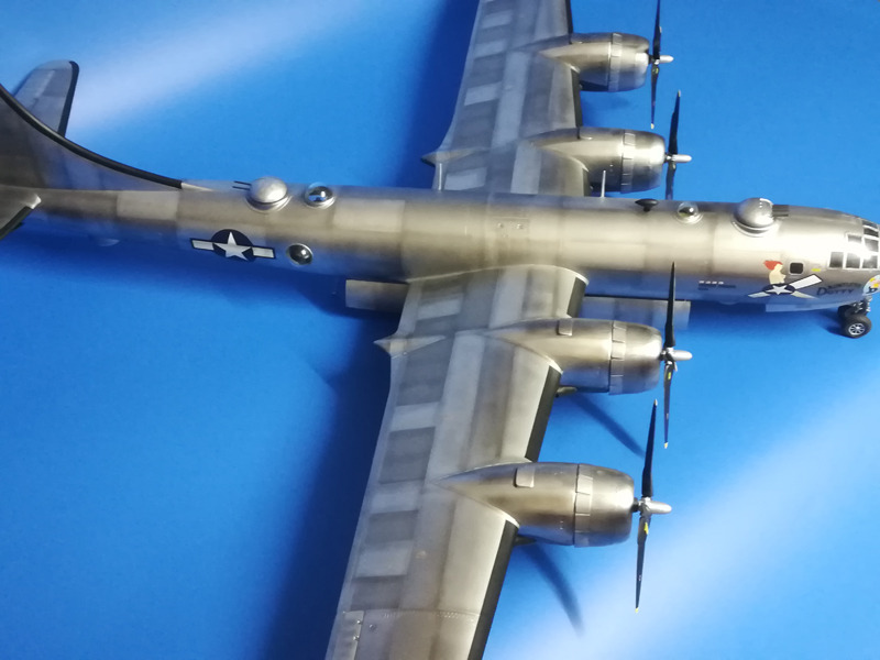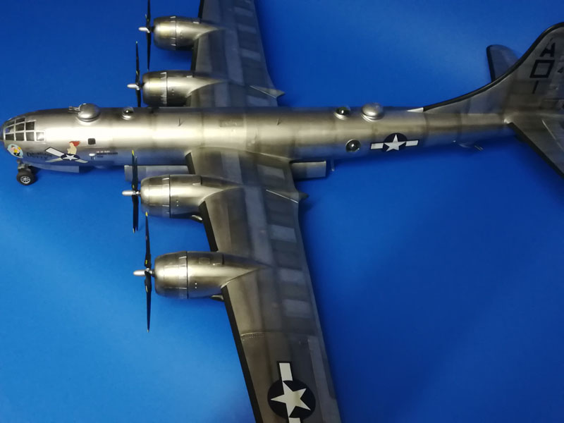 Die Kabine war druckbelüftet und das vordere Abteil wurde mit dem hinteren Abteil mit einer Röhre verbunden. Damit war das Problem gelöst, um beim Öffnen des Bombenschachtes keinen plötzlichen Druckverlust zu haben. Alle MG- Stände waren fernbedient. Für die damalige Zeit war es ein überaus fortschrittlicher Entwurf Wie ja hinreichend bekannt, war es eine B-29 mit Namen „Enola Gay“, die die erste Atombombe auf Japan warf. Ebenso fiel die zweite Atombombe aus dem Bombenschacht einer B-29 mit Namen „Bockscar“. Somit ging ein trauriges Kapitel der Menschheit zu Ende, ein neues begann.
