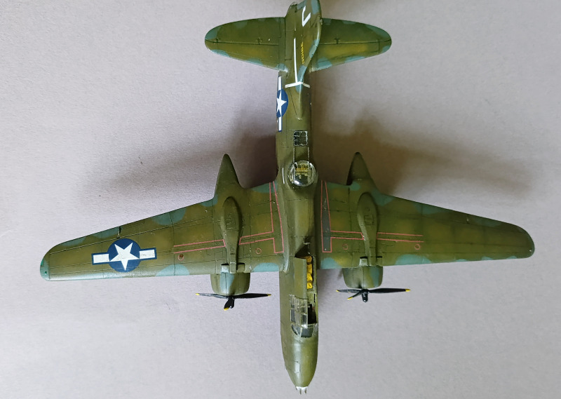 Fazit:Das Modell ist für mich wieder ein rundum gelungenes Ergebnis geworden. Diese Maschine hat einfach etwas Besonderes an sich. Ich hätte mir lediglich gewünscht, dass man noch ein wenig mehr darstellen könnte – etwa einen geöffneten Bombenschacht. Das ändert jedoch nichts daran, dass die A-20 ein sehr schöner Bausatz ist, der mit etwas Mühe zu einem echten Eyecatcher wird.