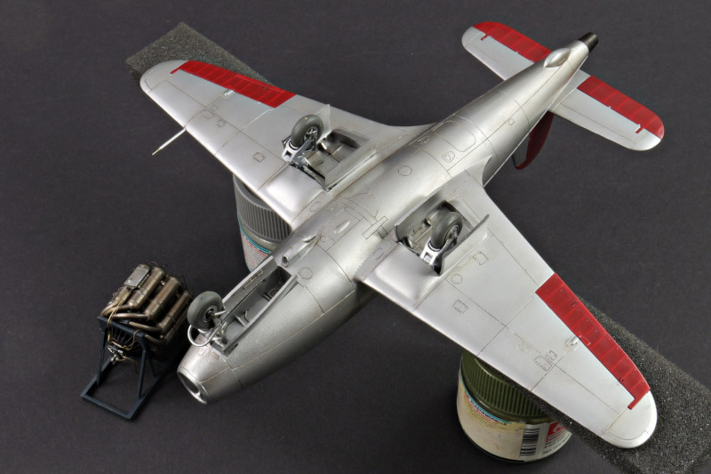 Die LackierungDa mir die britische Tarnung mit der gelben Unterseite nicht so sehr gefallen hat, habe ich das Modell im frühen Zustand mit verschiedenen Alclad- und AK Xtreme-Metallfarben lackiert. Die weißen Streifen waren am Original Temperaturmeßstreifen und sind als Decals enthalten.