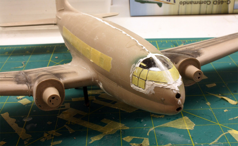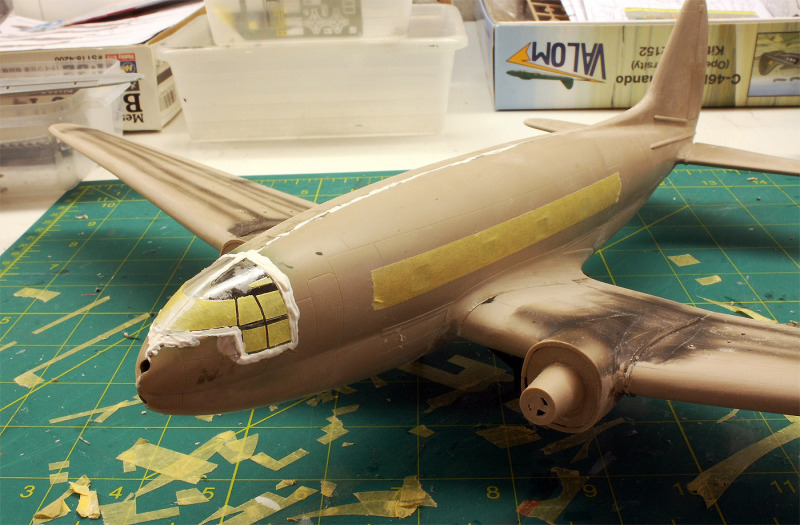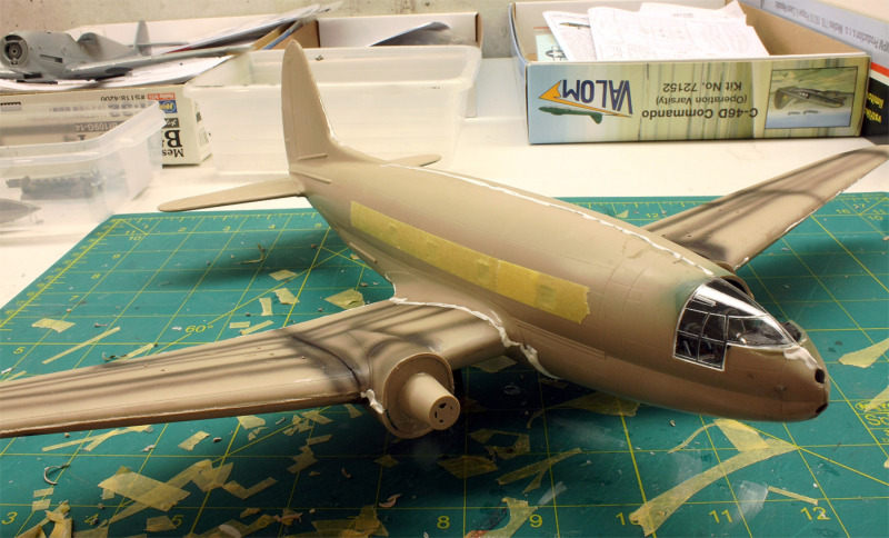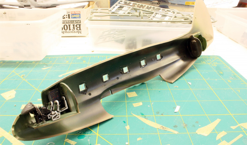 Der einzige, dafür aber folgenschwere Missstand, dem ich bei Valoms Commando begegnet bin, findet sich in der zweiteiligen Cockpithaube. Dieses wird seltsamerweise in einer linken und einer rechten Hälfte geliefert. Die Baufotos zeigen, wie ich damit umzugehen versucht habe: um einen bündigen Anschluss an den Rumpf zu gewährleisten, wurde zuerst den Rumpf montiert und dann das rechte und folgend das linke Klarsichtteil angebracht. Justament hier ließ aber die Passgenauigkeit zu wünschen übrig, was zu delikat-vorsichtigem und wiederholtem Fillern und Schleifen geführt hat.