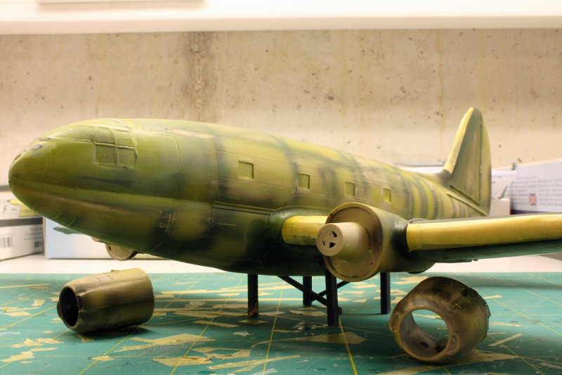 Die Passgenauigkeit dieses Kunststoffs ist dabei gar nicht einmal so schlecht, gröbere Unstimmigkeiten sind mir nicht in Erinnerung. Besonders erfreut war ich über die exzellente Passung der Klarsichtteile der Rumpffenster. Diese können schön bündig mit der Außenhaut verklebt werden, ein Umstand, den ich etwa bei der Boeing 307 Stratoliner von Bat Project als nur schwer und aufwändig umzusetzen gefunden habe. Einmal fertig gestellt, resultiert der Rohbau in einem stabilen, festen Gefüge, was angesichts der Größe der Gesamtkonstruktion durchaus angenehm ist. Die kompakten abgerundeten Formen, die man zu diesem Zeitpunkt in Händen hält, machen den zeitgenössischen Beinamen „whale“ leicht nachvollziehbar.