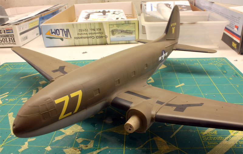 Curtiss C-46D Commandovon Roland Sachsenhofer (1:72 Valom)Oft liest man davon, dass die Curtiss C-46 Commando stets im Schatten einer anderen Transportflugzeuglegende gestanden habe, der weitverbreiteten C-47 Dakota von Douglas. Seit ich die hier gezeigte Commando gebaut habe, drängt sich mir allerdings noch ein anderes, nicht ganz ernst gemeintes Wortspiel auf: schon durch die eindrucksvolle Größe der C-46 muss sie es sein, die hier den eindrucksvolleren Schatten wirft! Tatsächlich war mir bis zu diesem Projekt nicht klar, wie groß eine C-46 tatsächlich ist.
