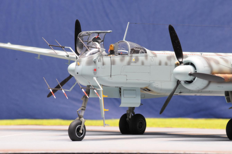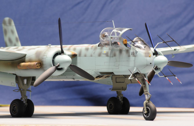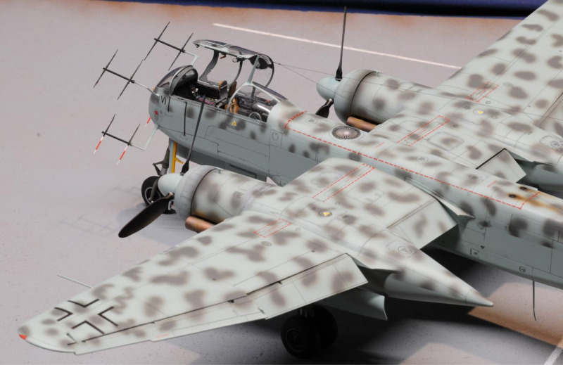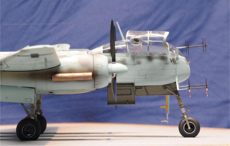 Da zu diesem Zeitpunkt der Uhu noch auf den Rücken gelegt werden konnte, wurde die Unterseite vollständig fertiggestellt mit Fahrwerksklappen, Kleinantennen, Alterungsspuren und Waffenspuren und auch das Bugfahrwerk sowie die Aufstiegsleiter.