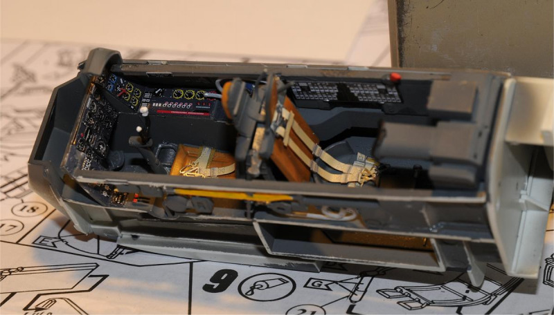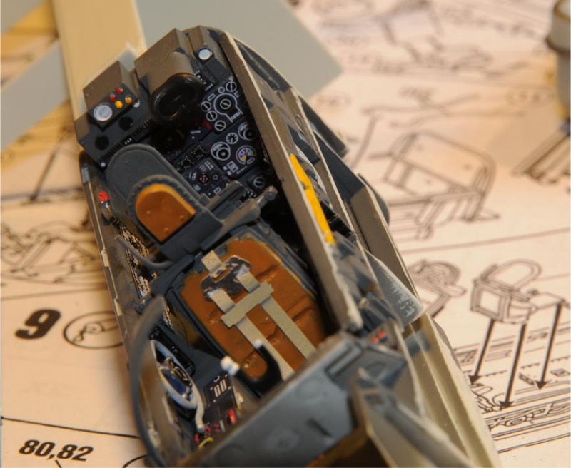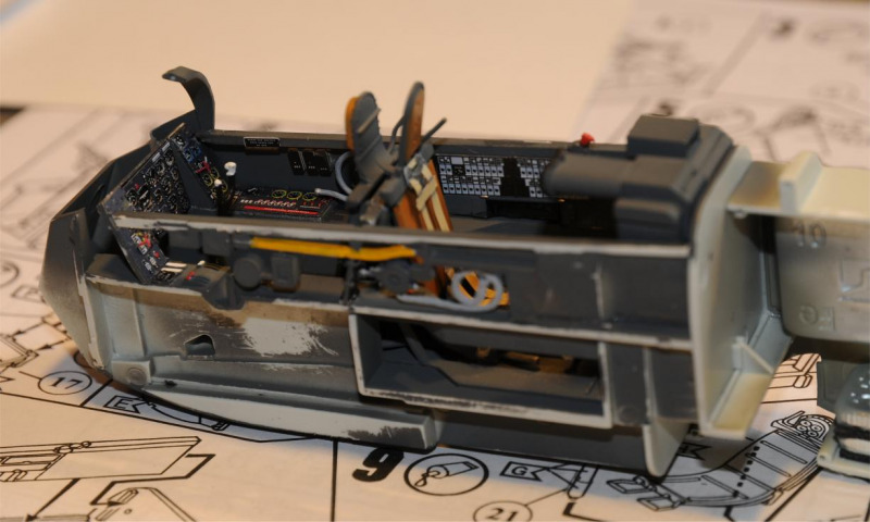 Gesehen habe ich das fertige Modell erstmals bei Vorstellungen auf Modellversium. Mein Gedanke war dann: Ein ungewöhliches Flugzeug, das ich bauen möchte. Also besorgte ich mir die ältere Bausatz-Variante von Revell und die Zubehörteile fürs Cockpit von Eduard. Eine Besatzung wäre auch schön gewesen, es gab aber lediglich einen Piloten ohne Copiloten. Also verwarf ich diese Idee und baute später das Cockpit offen. So konnte man später besser die Instrumente erkennen.