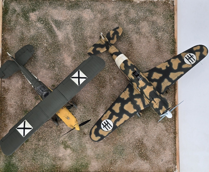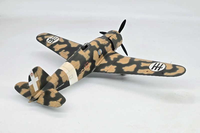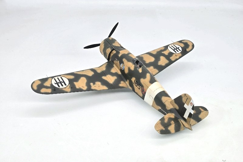 Das Modell lässt sich ganz gut bauen, es liegen sogar Resinteile als Extras mit dabei. Man kann zwei Varianten bauen. Als Zurüstteile habe ich mir extra noch detailliertere Räder gekauft und eine italienische Pilotenfigur. Einzig negativ sind die Decals, echt schlechte Qualität und beim Geschwaderwappen fehlte die blaue Farbe komplett (gelb eingekreist).