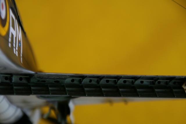 Der Bau:Die einzelnen Bauteile und Baugruppen passten herforragend zusammen und ließen sich mittels Ambroid Pro Weld, einem sehr dünnflüssigen Plastikkleber, welcher nach dem Kapillarprinzip funktioniert, problemlos zusammenfügen. Am Übergang zwischen Rumpf und Tragflächen kam ein wenig Milliputt zum Einsatz, um einen sauberen Übergang zu schaffen. Ebenso wurden sämtliche Klebenähte verschliffen und wo es nötig war mit Mr. Surfacer 500 behandelt. Das anschließende Nachgravieren mit verschiedenen Werkzeugen und Schablonen sowie das Reinigen der Außenhaut mit Alkohol beendeten den Rohbau.