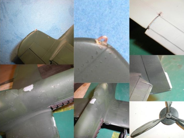 1) Komplettes Gravieren des Modells mit zusätzlichen Nietenreihen und Änderung einiger Panels im Rumpf- und Flügelbereich sowie am Propellerspinner